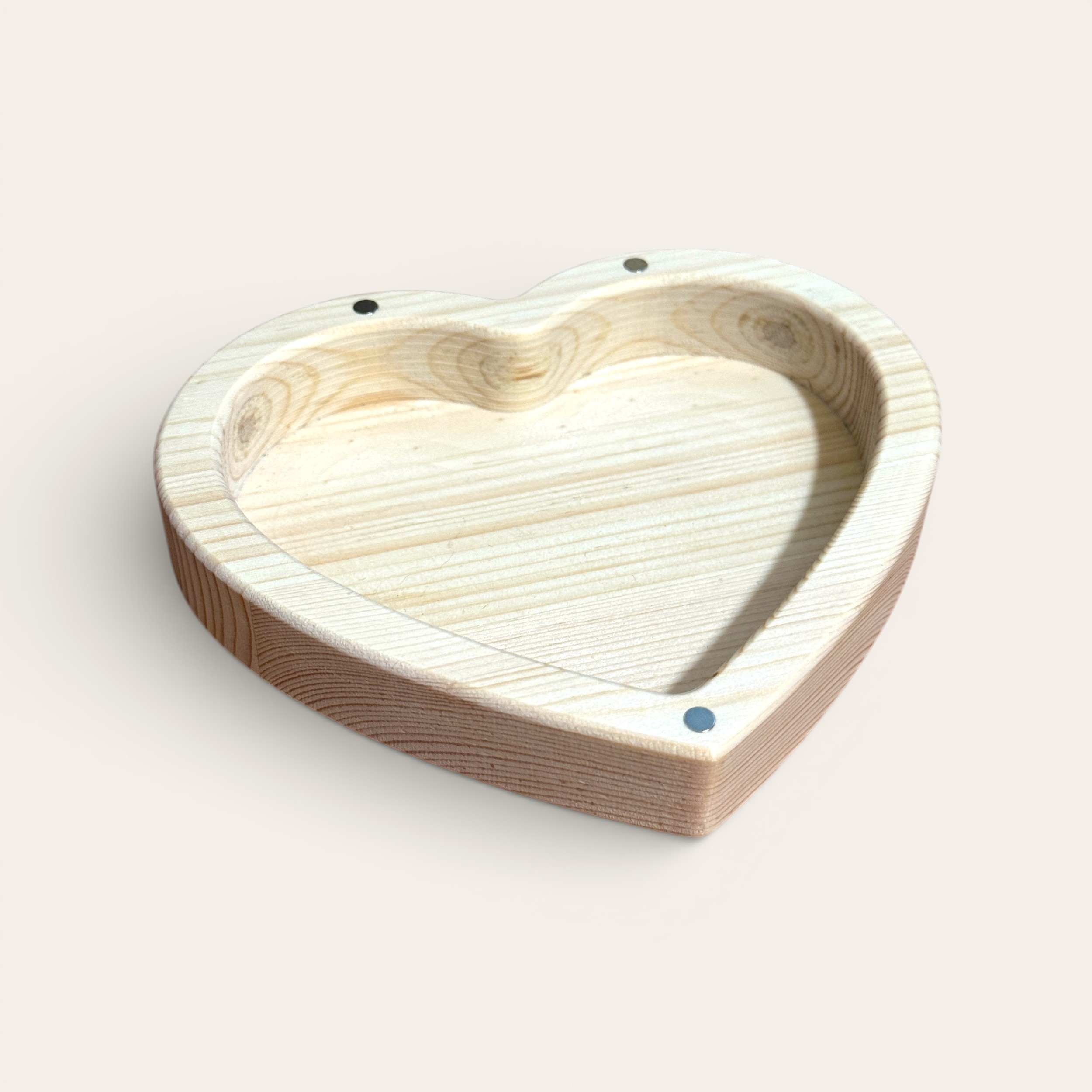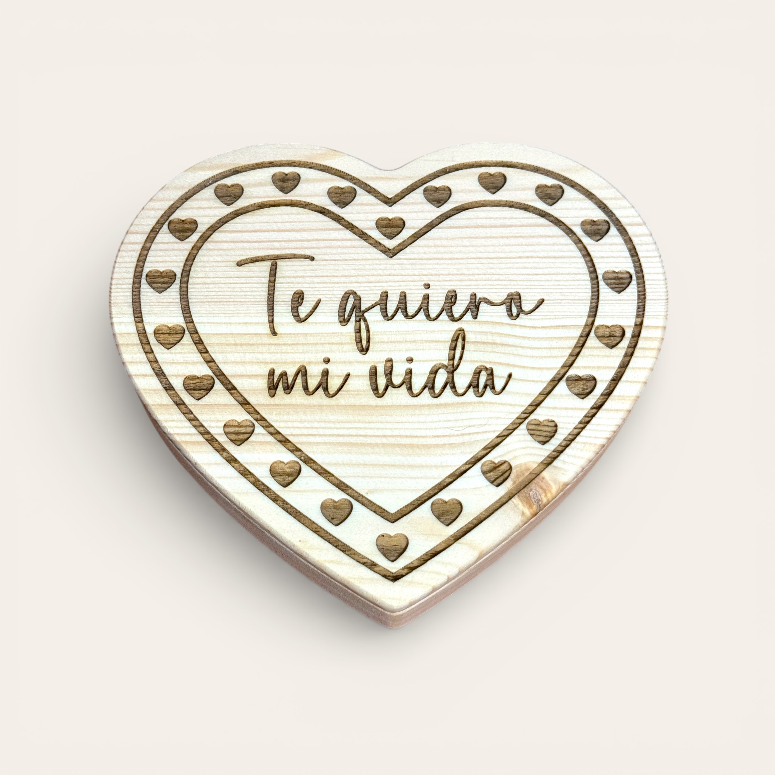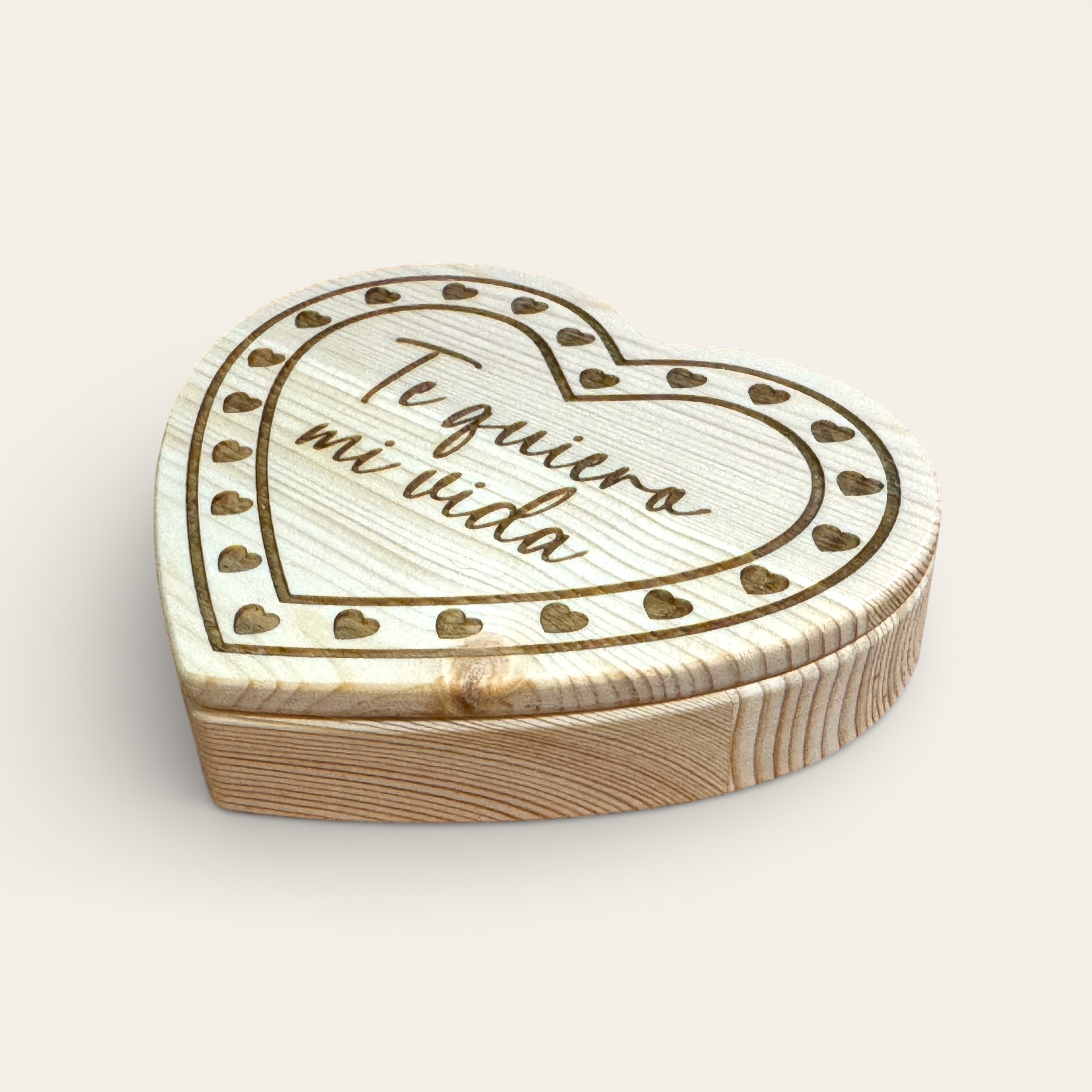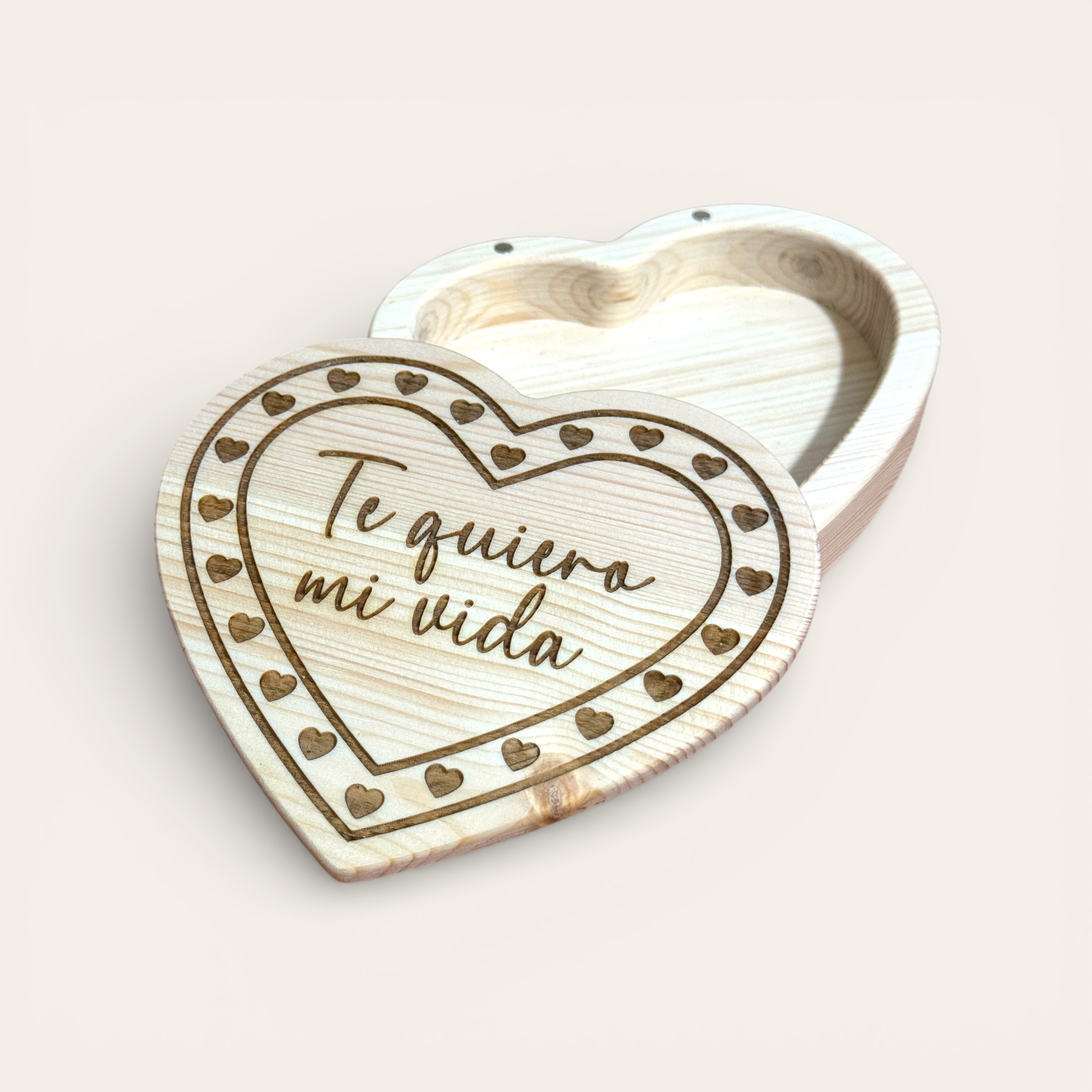 Descubra o aconchego e a elegância da madeira natural com este exclusivo porta-joias em formato de coração, feito à mão em madeira de pinho maciça e projetado para preservar suas joias e memórias mais especiais.